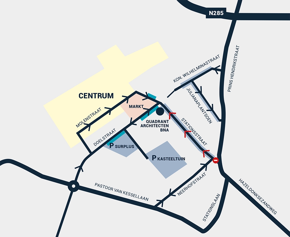 • Stationsstraat: omdraaien van de huidige rijrichting.